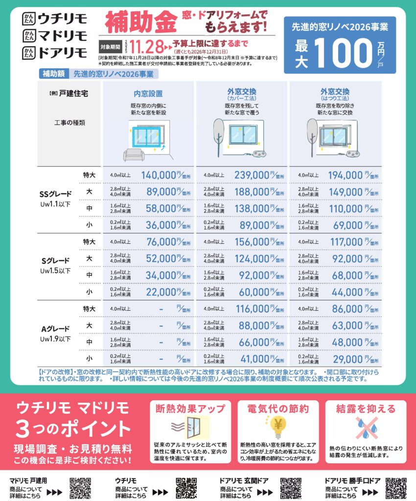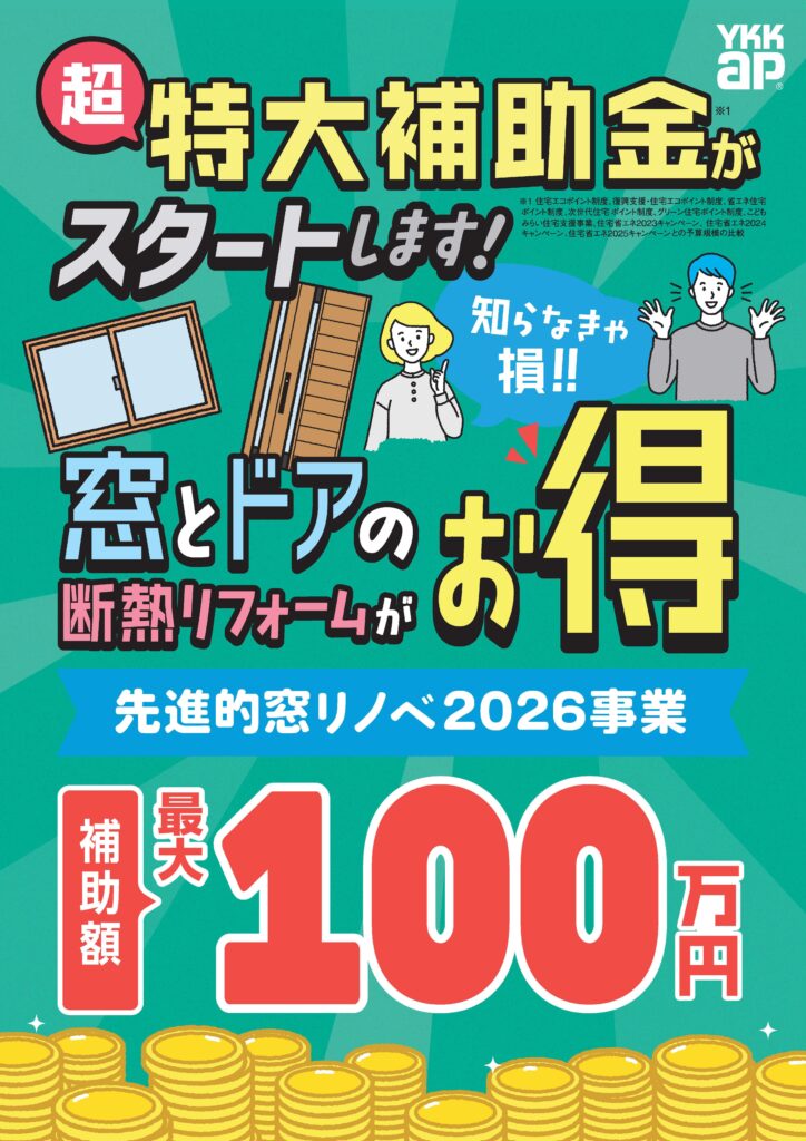 住宅の省エネ性能向上を目的とした国の補助制度「先進的窓リノベ2026事業」がスタートしました。