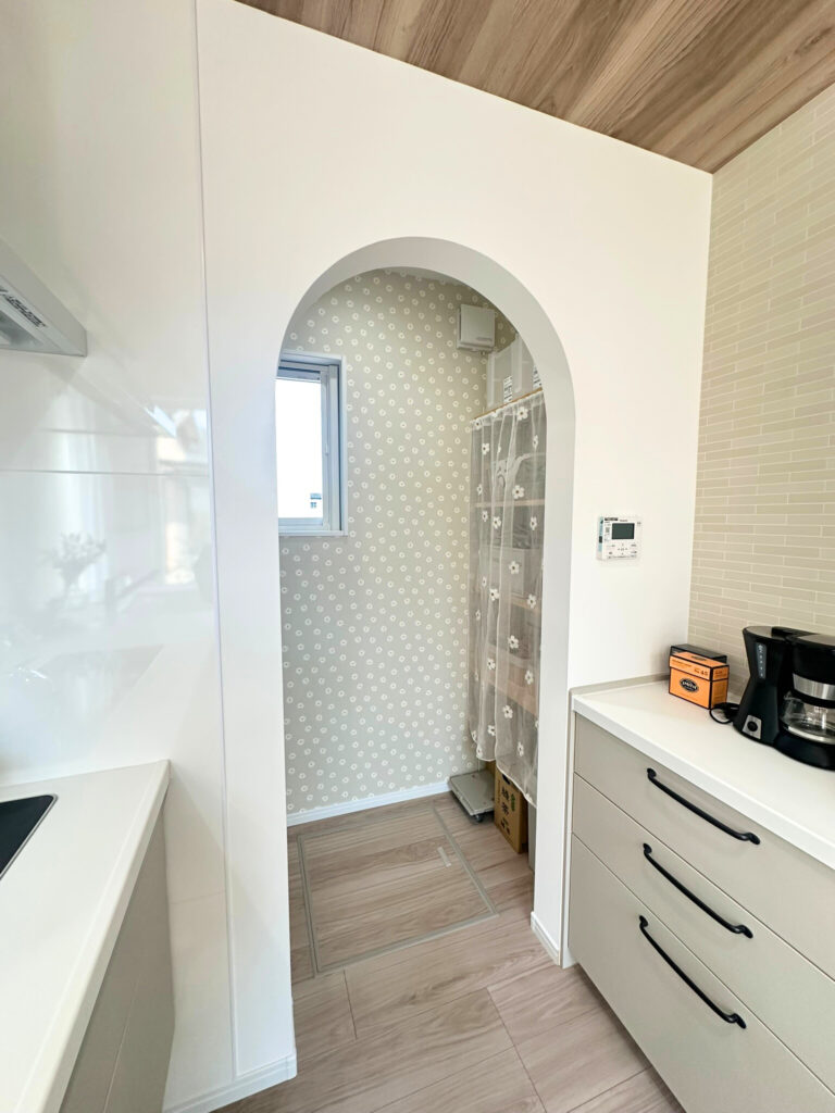 入口は、やさしく丸みをもたせたアーチ形状に。