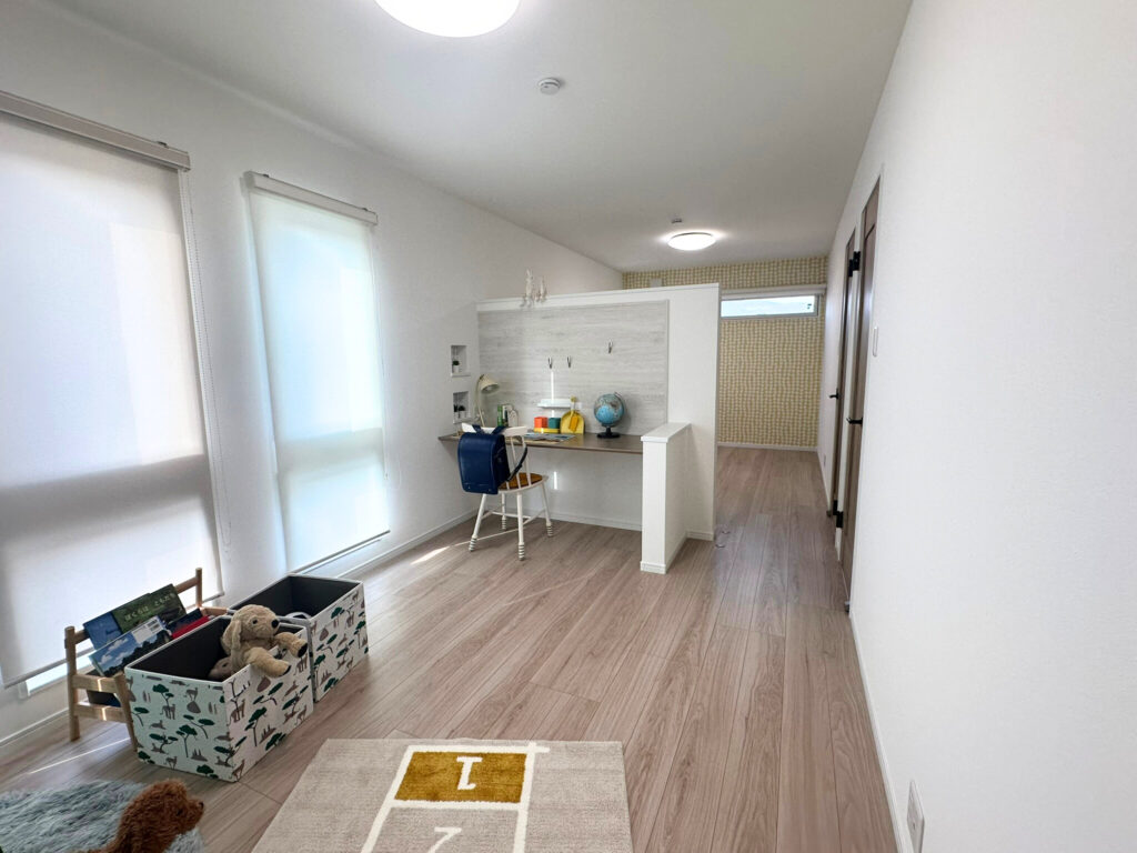 現在は広々と使える一室空間ですが、将来は壁を設けて2部屋に分けられる設計に。