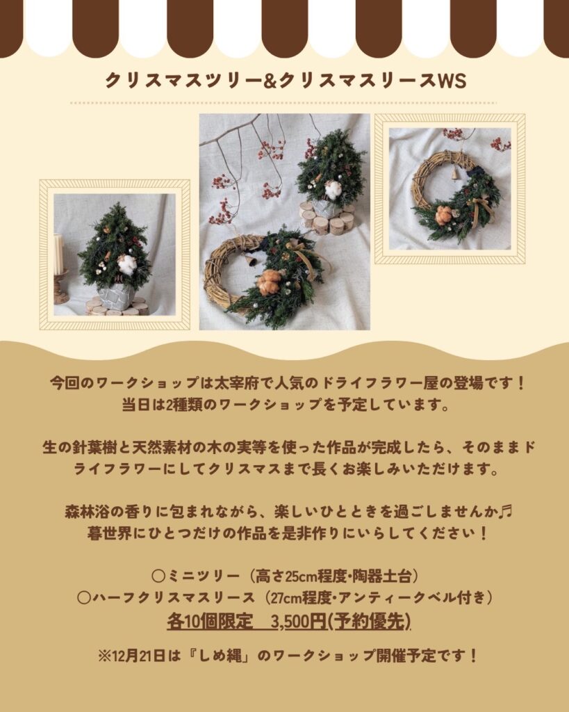 ✓クリスマスミニツリー&リースのワークショップ(予約優先)