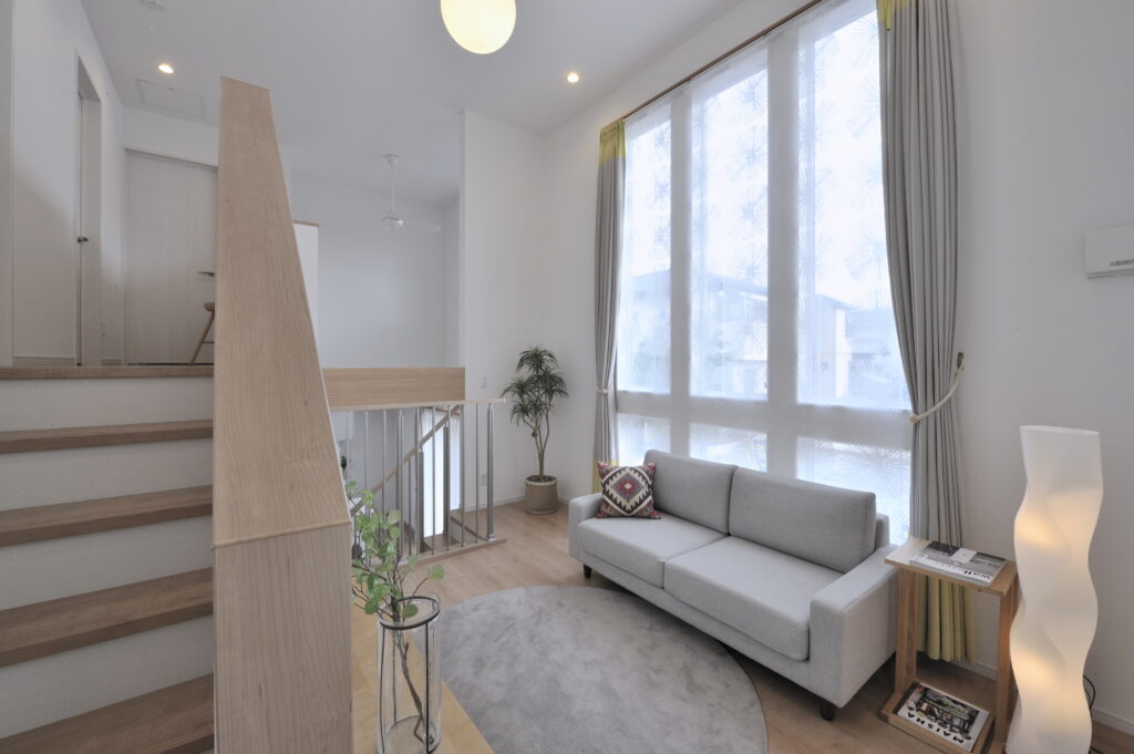 大きな窓から明るい日差しが降りそそぐスキップフロア。