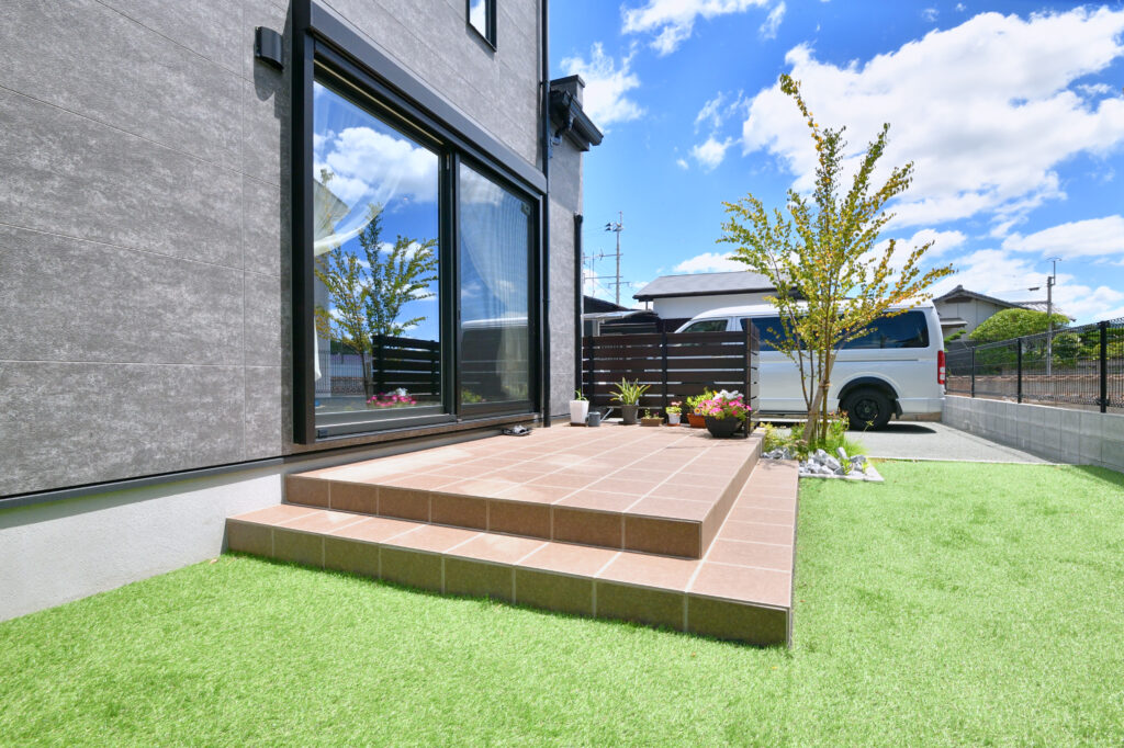 タイルデッキを使用しているため、雨や日光による劣化の心配もなく、汚れにくく、汚れたとしても簡単に汚れを落とすことが可能。